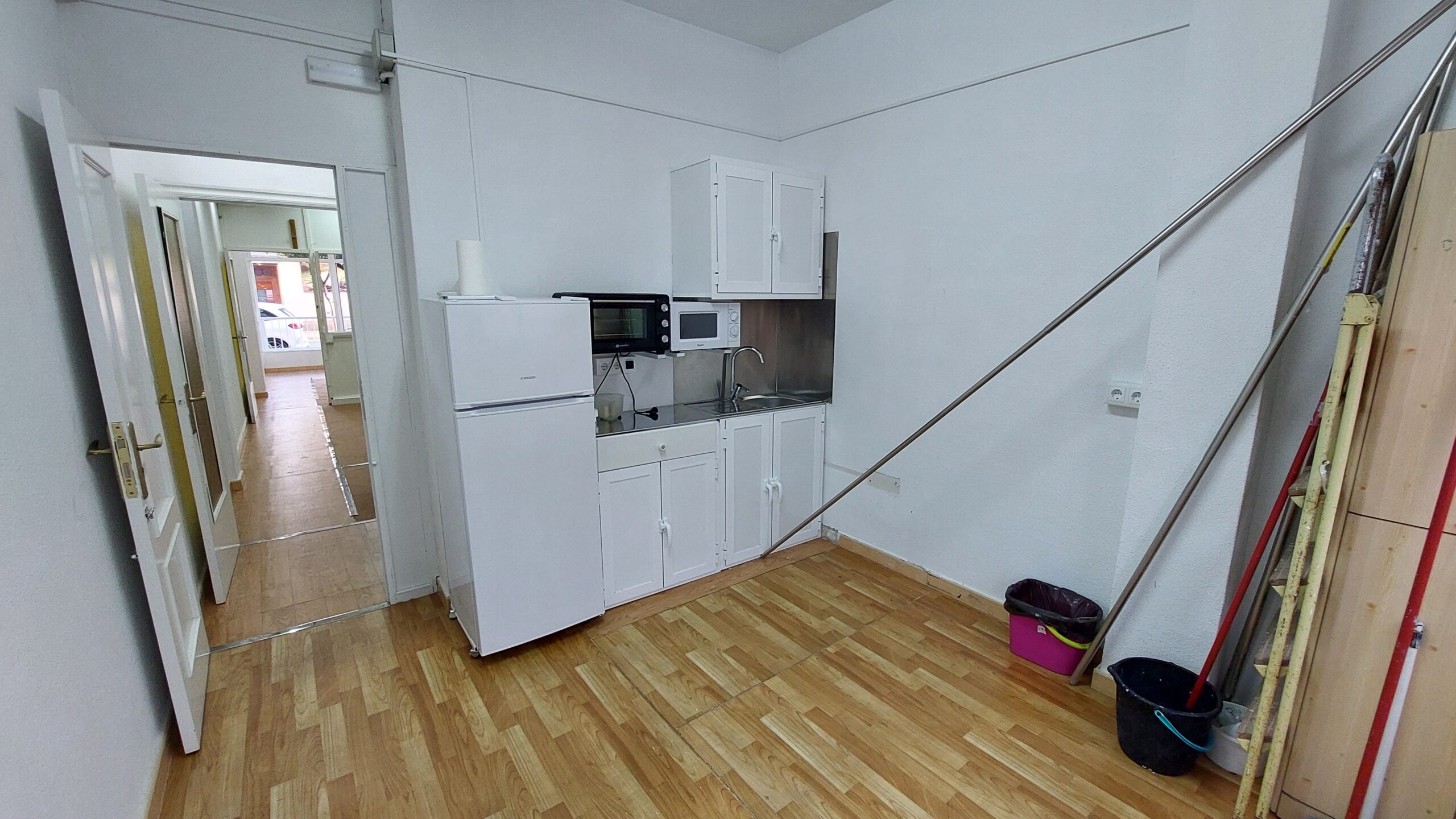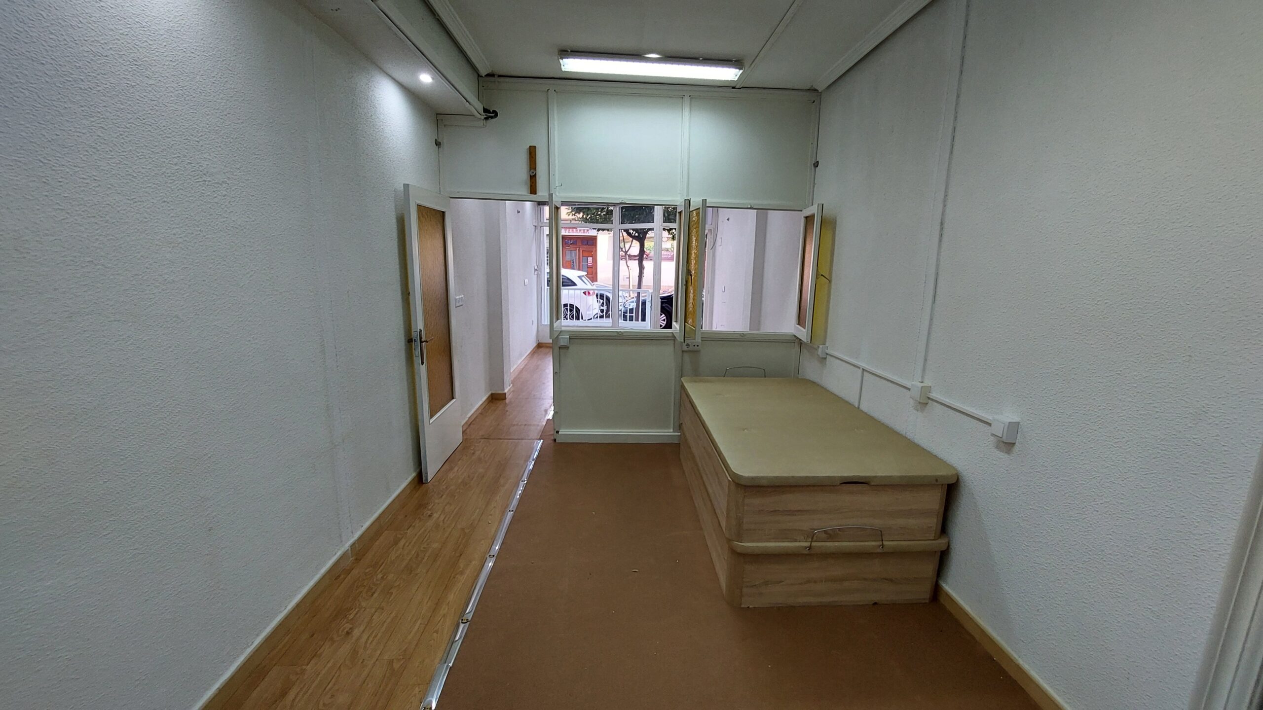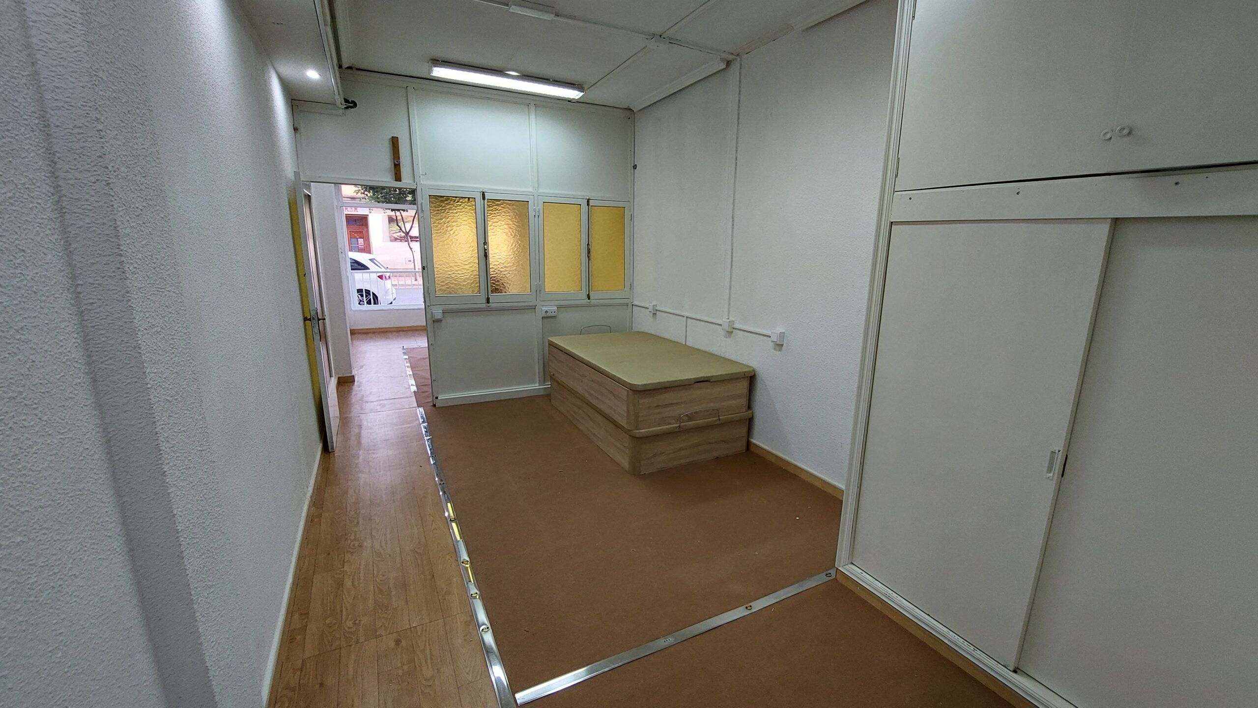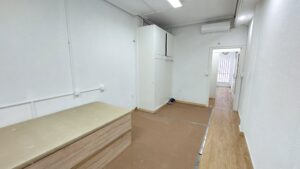 El local estaba destinado originariamente a oficina. Está distribuido en 3 estancias, dos de ellas configuradas como despachos, y en la tercera hay instalada una pequeña cocina, ideal para realizar pequeños descansos a lo largo de la jornada laboral. Además, a través de esta estancia, el local dispone de un segundo acceso auxiliar desde la plaza Constitución, ideal para carga y descarga, lo que facilita su uso y el destino que se le quiera dar.